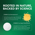 Vitamin D3 helps your body absorb calcium, while K2 directs it to bones and teeth instead of arteries or soft tissue.*